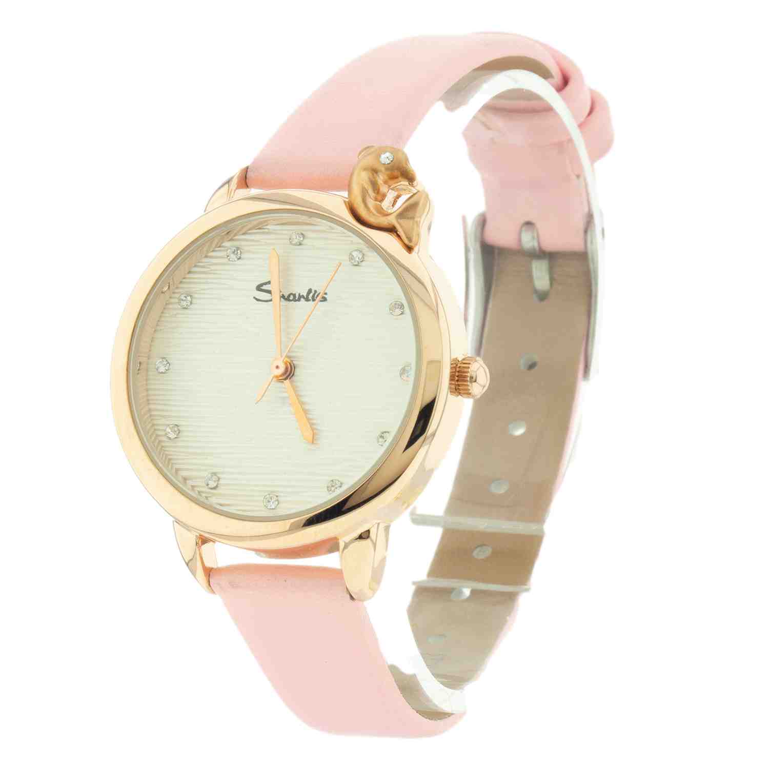 Disfrute de reloj con muchos detalles, este reloj tiene una pedrería de fantasía en cada uno de sus horas, su dial de acero dorado dejan relucir la textura delicada de un fondo con color blanco cremoso.