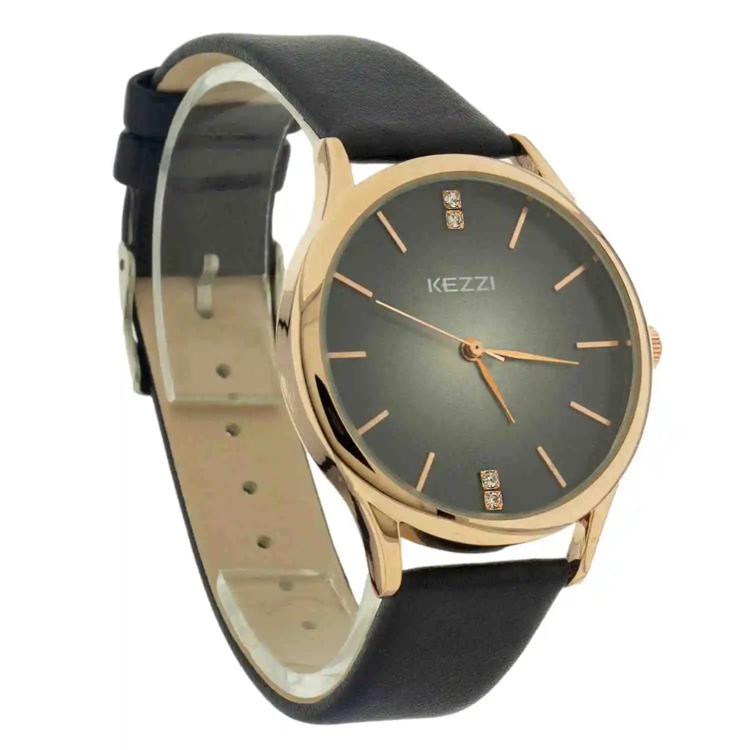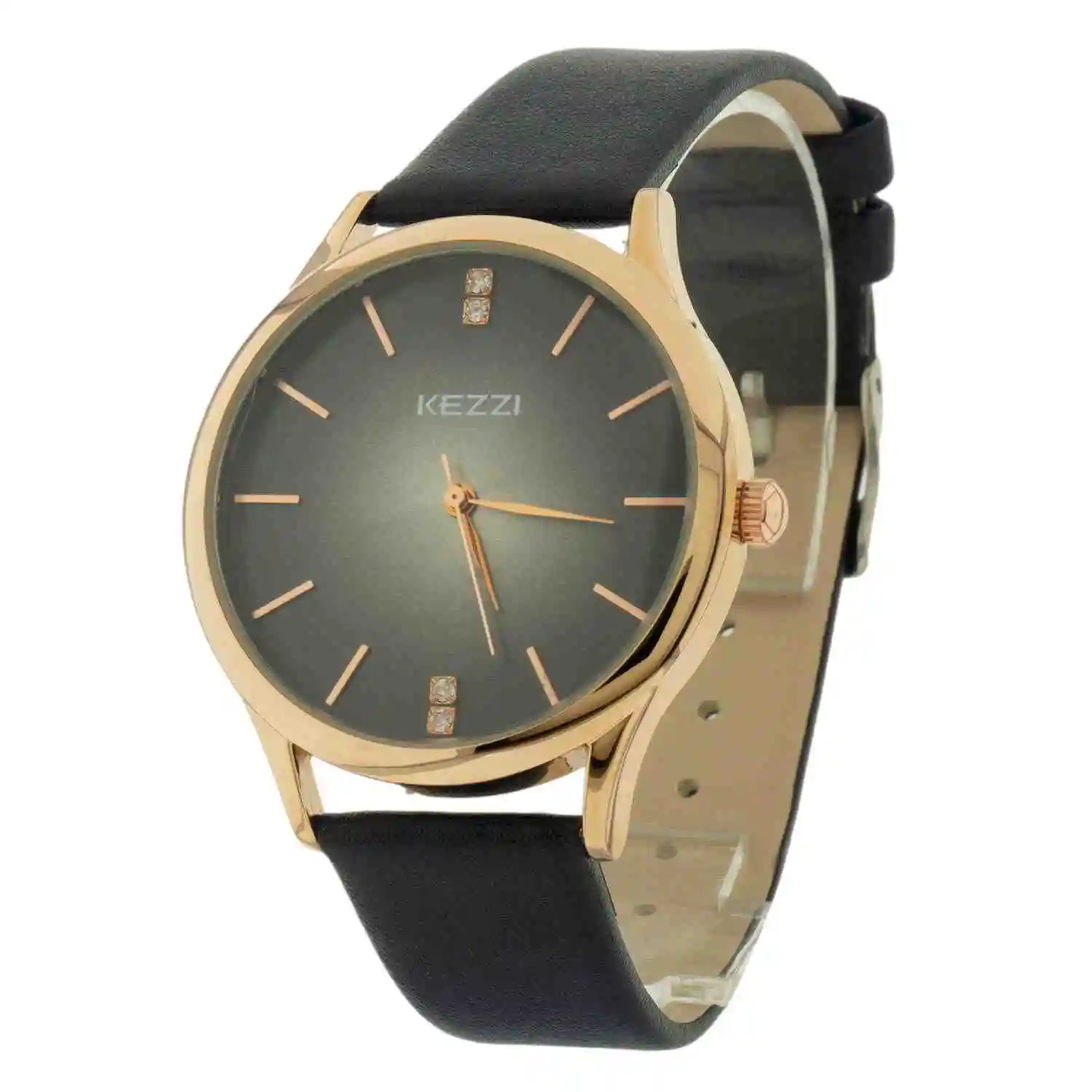 Elige una alternativa clásica y de gran fortaleza gracias a su fina correa de cuero negra y marco dorado con un fondo concéntrico de degrades blanco gris lo convierten en una pieza de moda provocativa y vivaz.