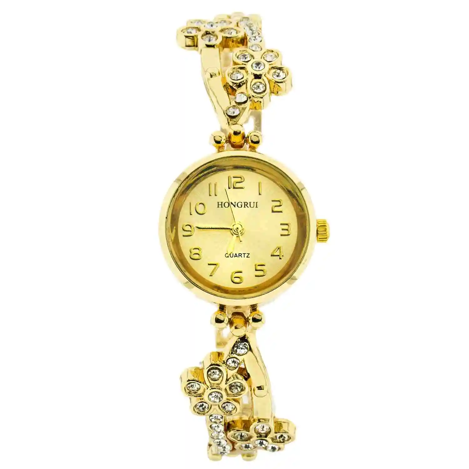 Si la elegancia, el detalle clásico y sofisticación es lo que necesitas pensamos que este reloj va responder a tus expectativas. Es un reloj hecho de acero dorado con finos detalles de pedrería que cubren hermosos diseños florares.