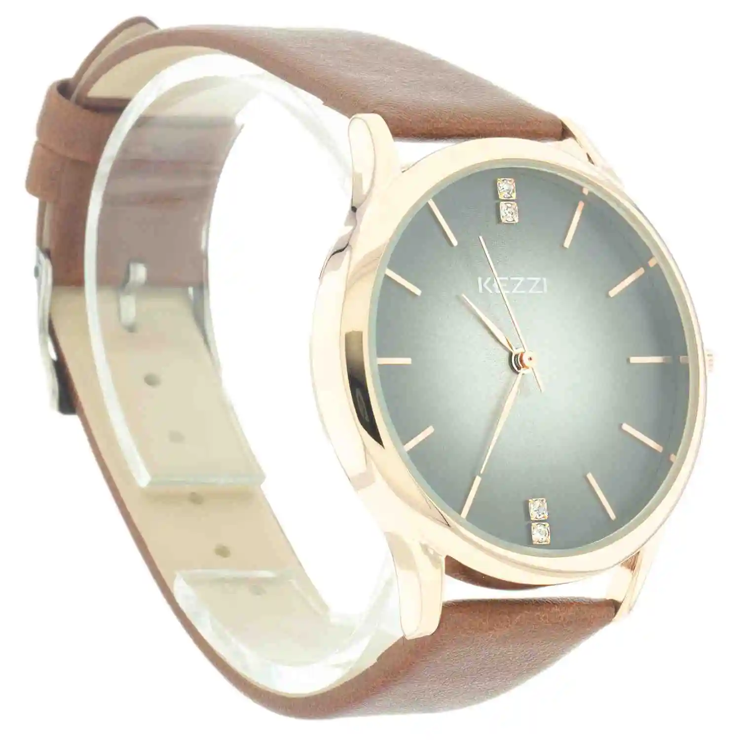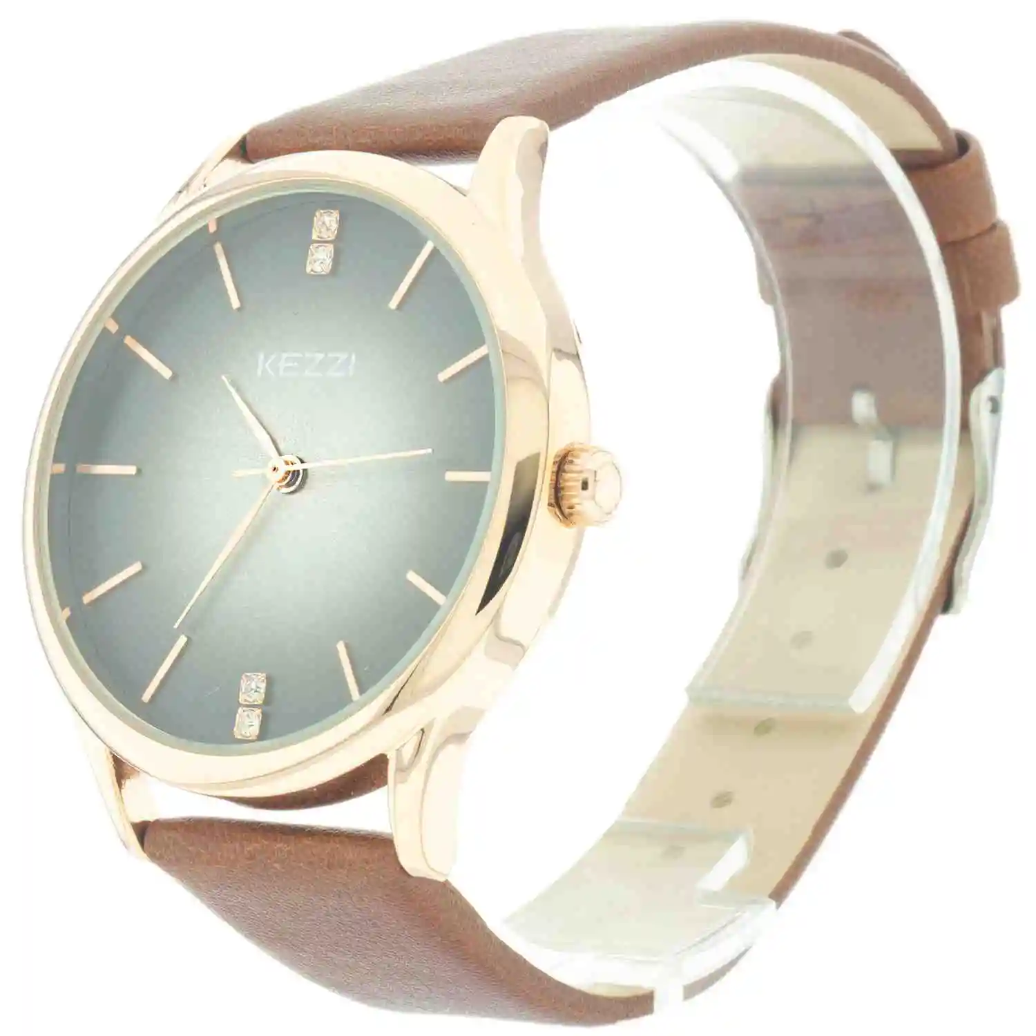 Elige una alternativa clásica y de gran fortaleza gracias a su fina correa de cuero tono chocolate y marco dorado con un fondo concéntrico de degrades blanco gris lo convierten en una pieza de moda provocativa y vivaz.